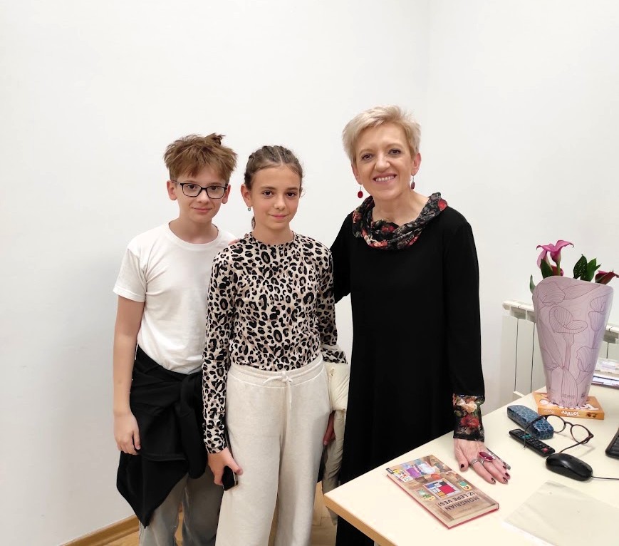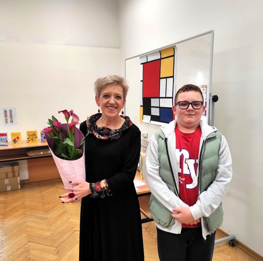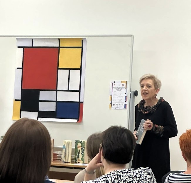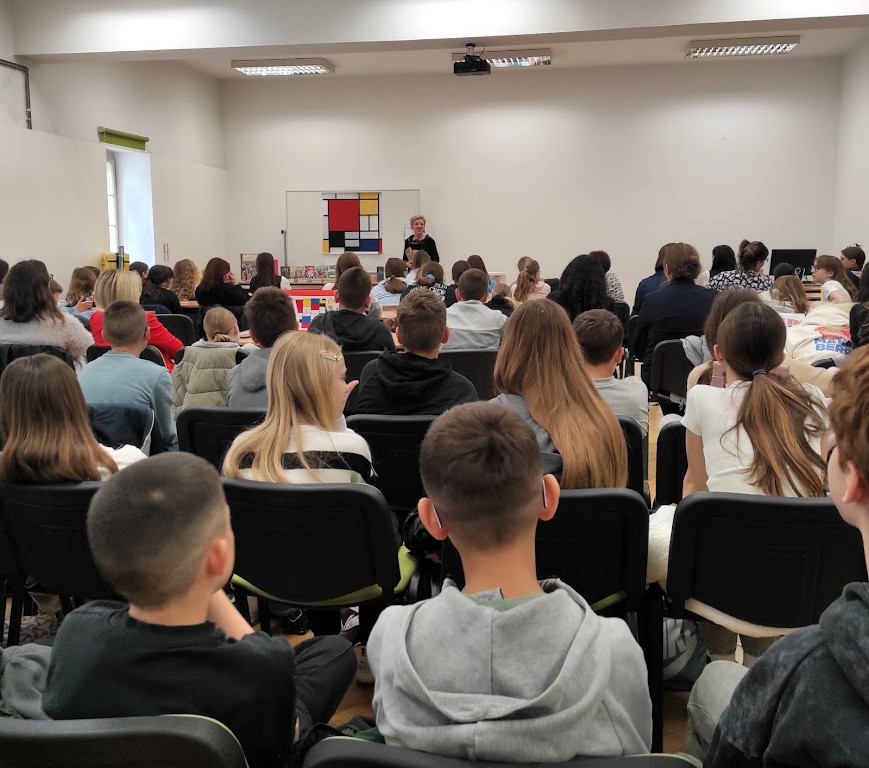 Na samom početku svi sudionici književnog susreta pogledali su videomamac za njezin roman Mondrian iz Lepe Vesi koji su snimili učenici 5.e razreda naše škole. To je kriminalistički roman za djecu objavljen 2021. godine.