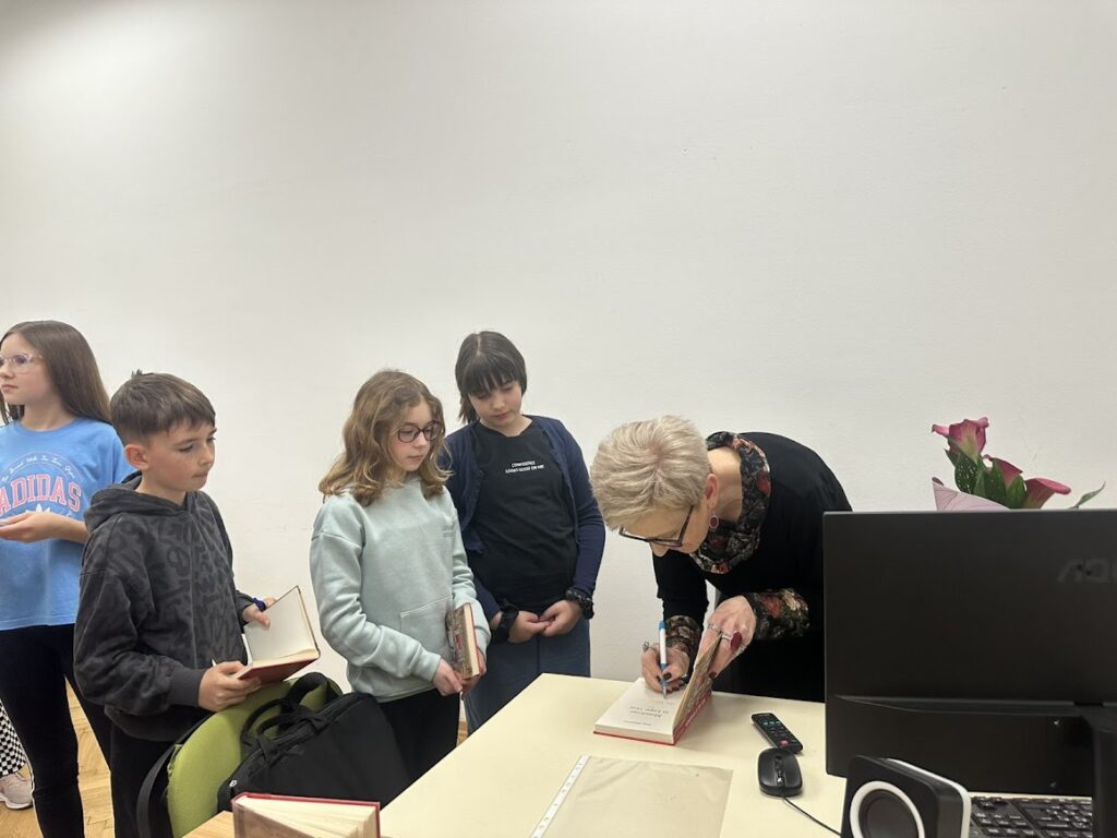 Na kraju susreta književnica je učenicima potpisivala svoje knjige i slikala se s njima. Potpisala je svoju knjigu koja će se moći posuditi u knjižnici naše škole.