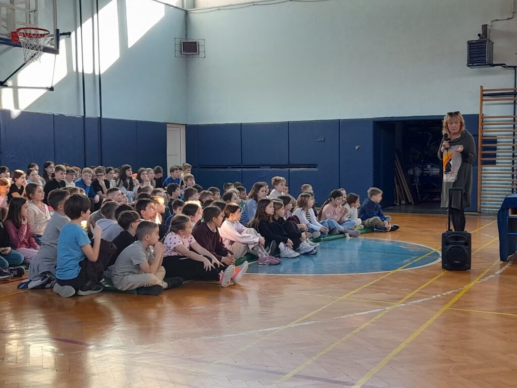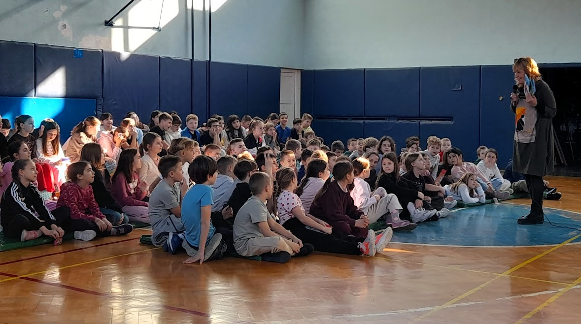 Poznata književnica Sanja Pilić održala je u petak 27.2.2026. književni susret za učenike 3. i 4. razreda PŠ Centar. Književni susret održan je za vrijeme 3. i 4. sata u Sokolani II, a prije toga susrela se i s učenicima u PŠ Ždralovi. Popularnu književnicu za djecu i mlade najavila je školska knjižničarka Rajna Gatalica. Nabrojala je njezinih 39 objavljenih knjiga za djecu i 48 slikovnica.